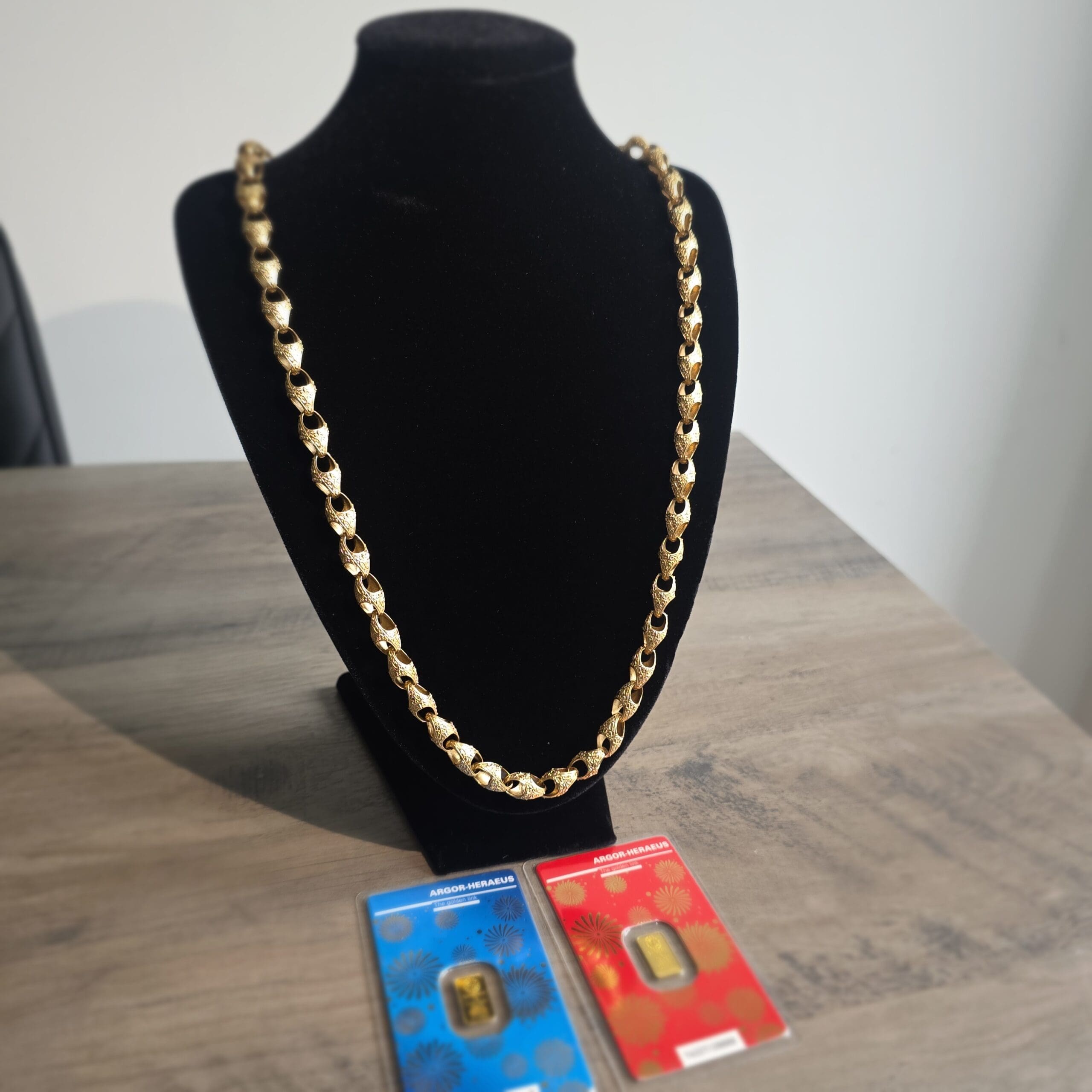 9CT Gold Acorn Chain (53g) RRP £3,890 & 2x 1g of Fineness Gold – Low Odds