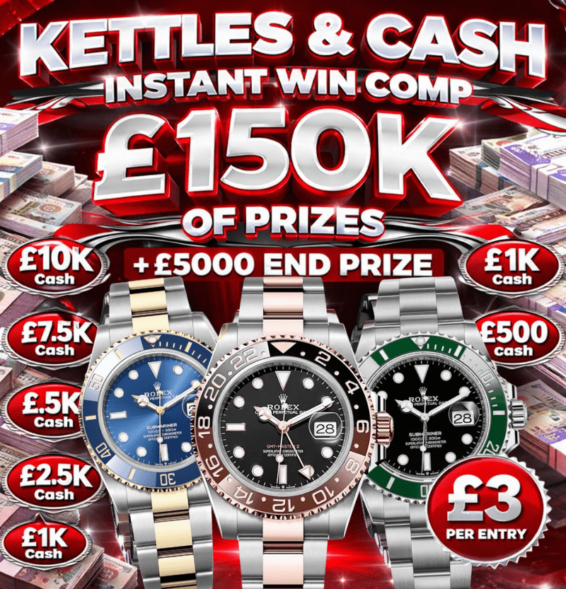 This is a Massive Instant Win competition with £150,000 worth of prizes up for grabs Instantly with a £5000 end prize