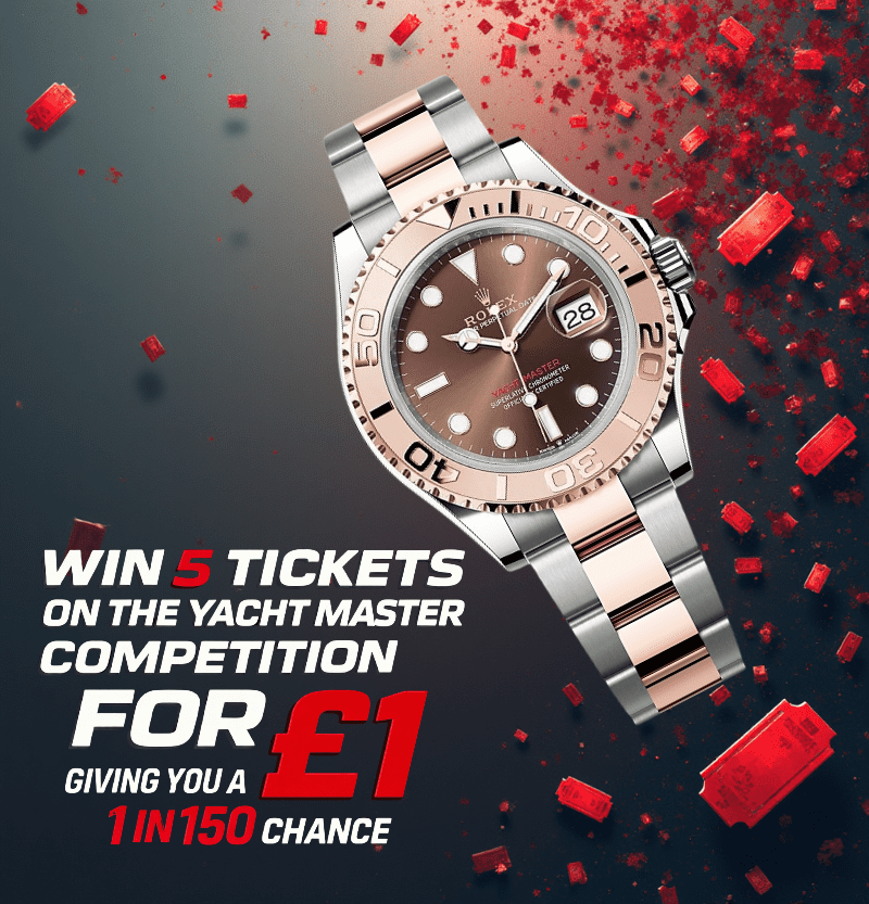 Win 5 tickets into the main competition for the Rolex Yacht Master. Giving you a 1 in 150 chance of winning the main draw.