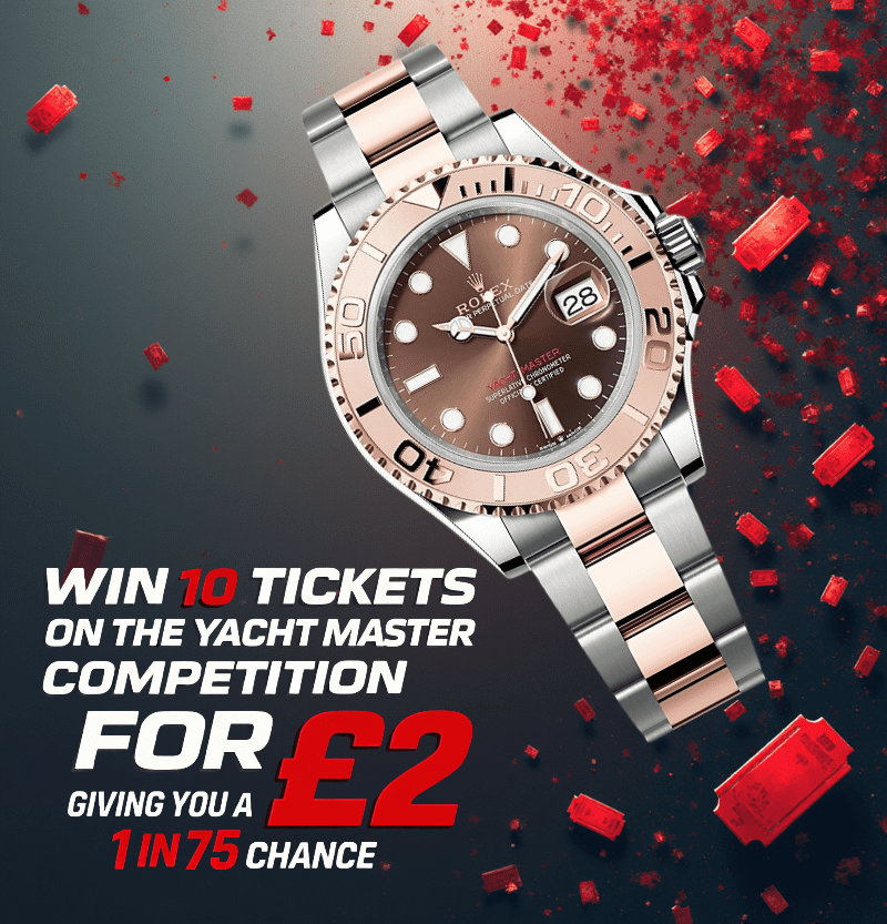 Win 5 tickets into the main competition for the Rolex Yacht Master. Giving you a 1 in 150 chance of winning the main draw.