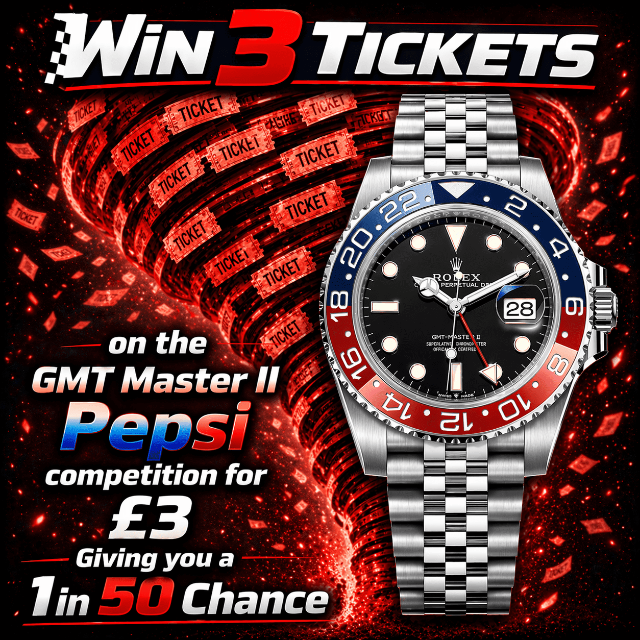 Win 3 tickets on the GMT Master II Pepsi competition for £3 giving you a 1 in 50 chance