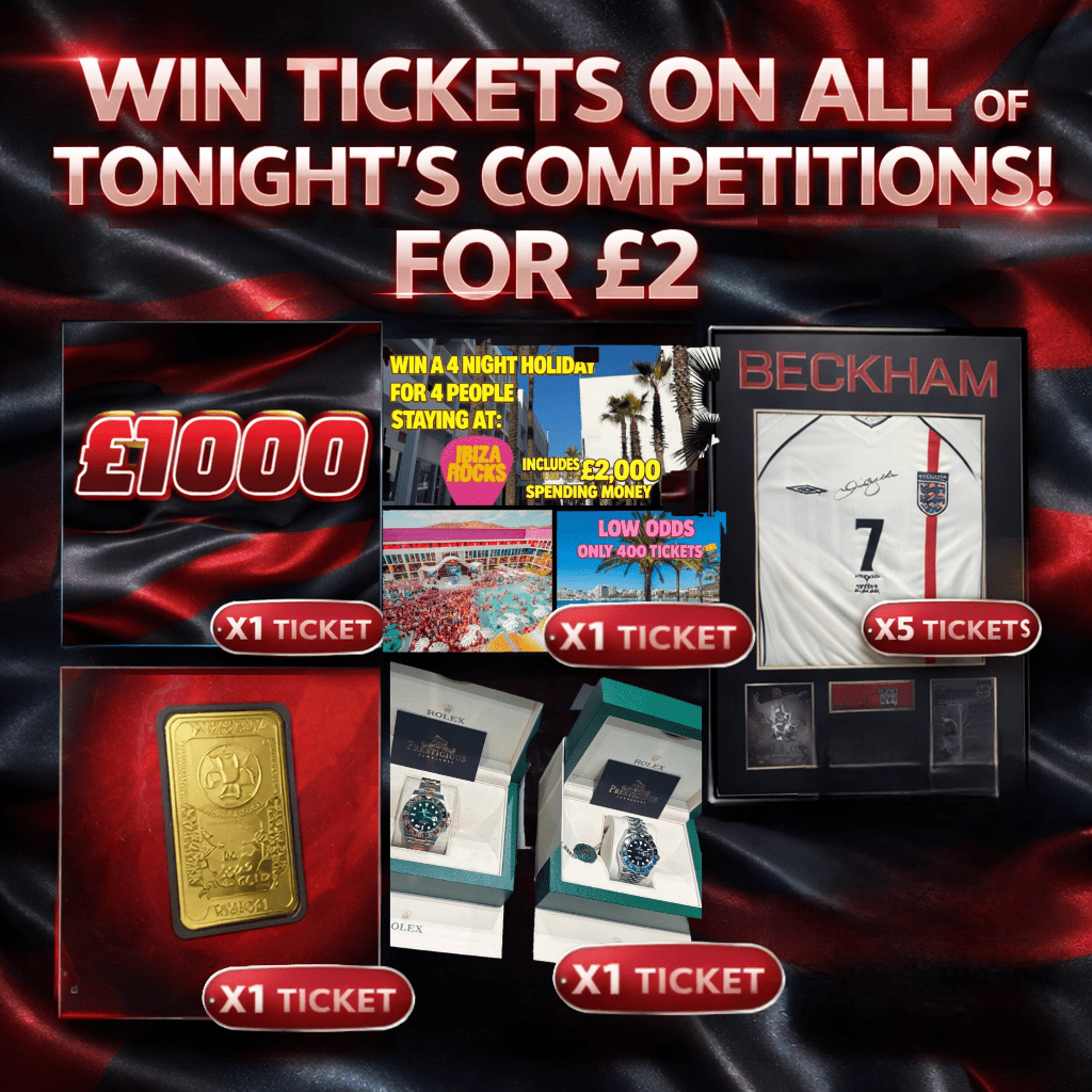 You must answer the competition question correctly to be entered into the live draw. Incorrect entries will not be notified or entered into the live draw.
