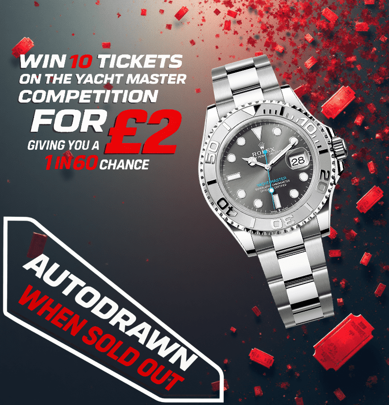 Win 10 tickets on the 2025 Rolex Yacht Master Rhodium Dial Competition. Giving you a 1 in 60 chance of winning the main draw.